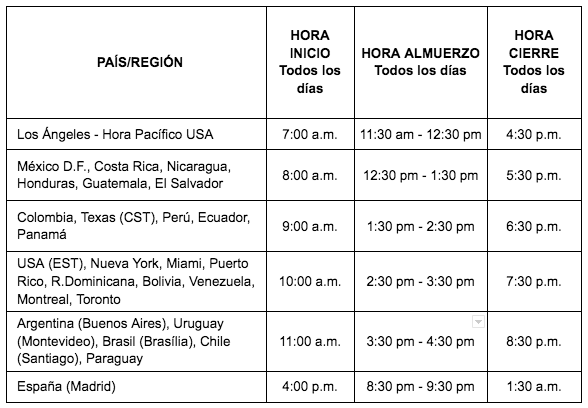 Octubre 20, 21 y 22 - 27, 28 y 29